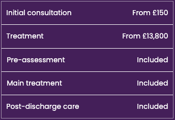 * £13,950 is a representative guide price. Treatment prices can differ on a patient by patient case and are determined by factors such as consultation fees, surgery options, anaesthetics options and post surgery options.